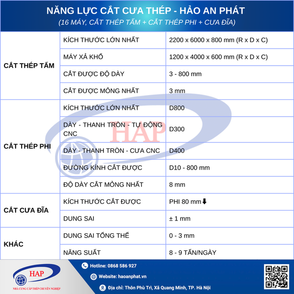 ▶️ Với hệ thống máy móc đa dạng và công suất mạnh mẽ, Hảo An Phát không chỉ đảm bảo tiến độ mà còn mang đến sự linh hoạt trong xử lý mọi yêu cầu cắt cưa, từ thép mỏng đến thép siêu dày, phục vụ đa dạng ngành nghề.
